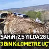 Iğdır'da uydu vericisi takılarak takibe alınan bir bozkır şahini, 2,5 yılda 28 ülkeyi dolaşıp 103 bin 456 kilometre yol katetti.