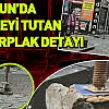 Samsun'da devam eden bir çalışma için kurulan iskelede ilginç bir destekleme yöntemi kullanılıyor. İskelenin temelini oluşturan ayaklardan biri ince bir kontrplak parçasına basıyor.