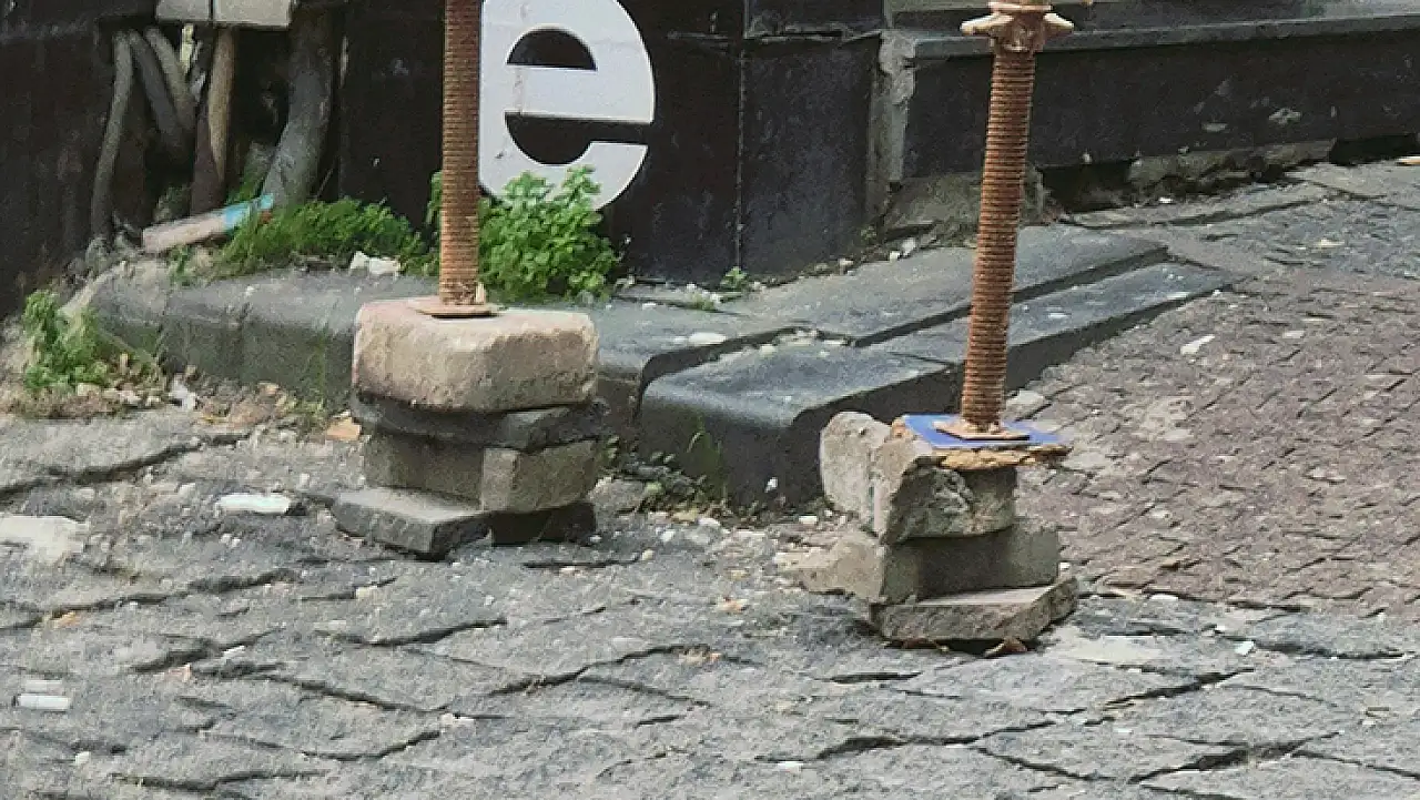 İlkadım ilçesi Osmaniye Caddesi üzerinde kazaya davetiye çıkaran bir iskele kurulumu görüntülendi. Tonlarca yük taşıyan inşaat iskelesinin ayaklarından birinin üç adet taşın üzerine oturtulmuş bir kontrplak parçası ile desteklenmesi görenleri şaşırttı.