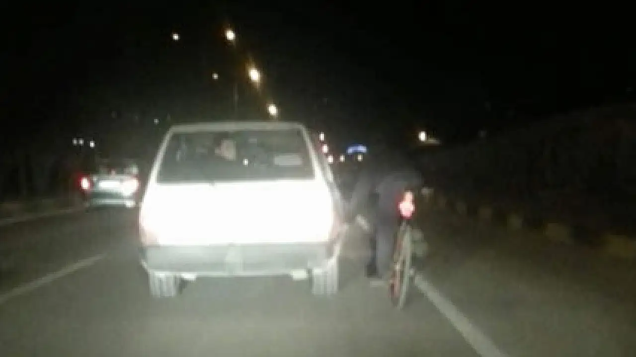 Edinilen bilgiye göre, Havalimanı yolu üzerinde, Abdulkadir Aksu Bulvarı'ndan Çimento kavşağına seyir halinde olan bir otomobilin arka kapısına tutunan bisiklet sürücüsü, trafikte tehlikeye neden oldu. Hem kendini hem de trafikteki diğer kişileri tehlikeye atan bisiklet sürücüsü, bir vatandaş tarafından cep telefonuyla görüntülendi. Otomobilin kapısına tutunmuş halde bisiklet süren kişi, diğer otomobil sürücüsünün durumu fark etmesi ve uzun farları yakması üzerine aracı bırakarak gözden kayboldu.