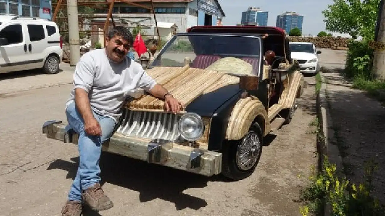 Sivas'ta bağlama ve mobilya ustaları tarafından yapılan ahşap arabanın ikincisi üretilmedi. Dünyada tek olan bu araba satılabilirse geliriyle okul yaptırılacak.