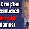 Yapılan operasyonların ve idari tasarrufların boşuna yapılmadığına dikkat çeken Arınç, "Emniyetin içerisinde bir küçük yapılanmanın mevcudiyeti. Eskiden de söylenirdi, yaptıkları pek fazla bilinmezdi. Bakın 300 bin polisimiz var, rütbeli, rütbesiz. Bütün arkadaşlarımız tenzih ediyorum, emniyet bizim sivil bir kurumumuzdur, güvenliğimizden sorumludur ve hepsi vatansever ve hepsi görevini iyi bir şekilde yapan şehitlerimizin, gazilerimizin olduğu bir topluluk. Ama bunların içerisinde küçük topluluk da kendisine amirleri tarafından verilen görevleri değil kendisine imamları tarafından verilen görevleri ifa etmek için çalışıyor ve başka kurumlardakilerle de bir siyasi operasyonla işbirliği yapıyorsa 'iddia olarak söylemiyorum, bizzat gerçek olduğunu söylüyorum' buna müsaade edemeyiz. Emniyetteki yapılanma yargının içerisine yine ağabeylerinin yönlendirmesiyle dosyanın kapağını bile açmadan oradan veriyorsa, 'ona gelecek karar hazindir' düşüncesiyle hareket ediyorsa biz buna karşıyız. Devletin hiçbirisi buna müsaade etmez" şeklinde konuştu.