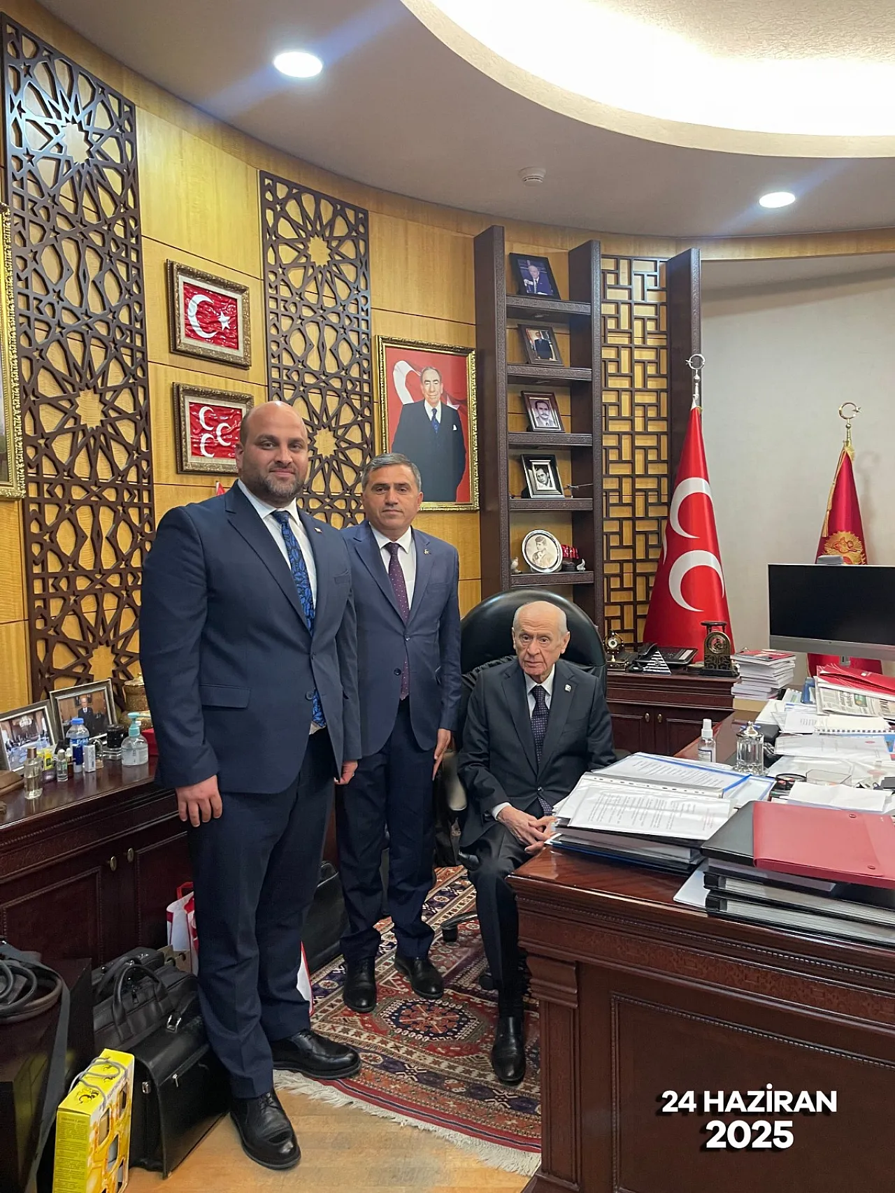 Grup toplantısının ardından MHP Samsun İl Başkanı Burhan Mucur ve Havza ilçe Başkanı İbrahim Yüksel, MHP Genel Başkanı Devlet Bahçeli’yi genel merkezdeki makamında ziyaret etti. Görüşmede Samsun’daki teşkilat çalışmaları hakkında bilgi verildi.
