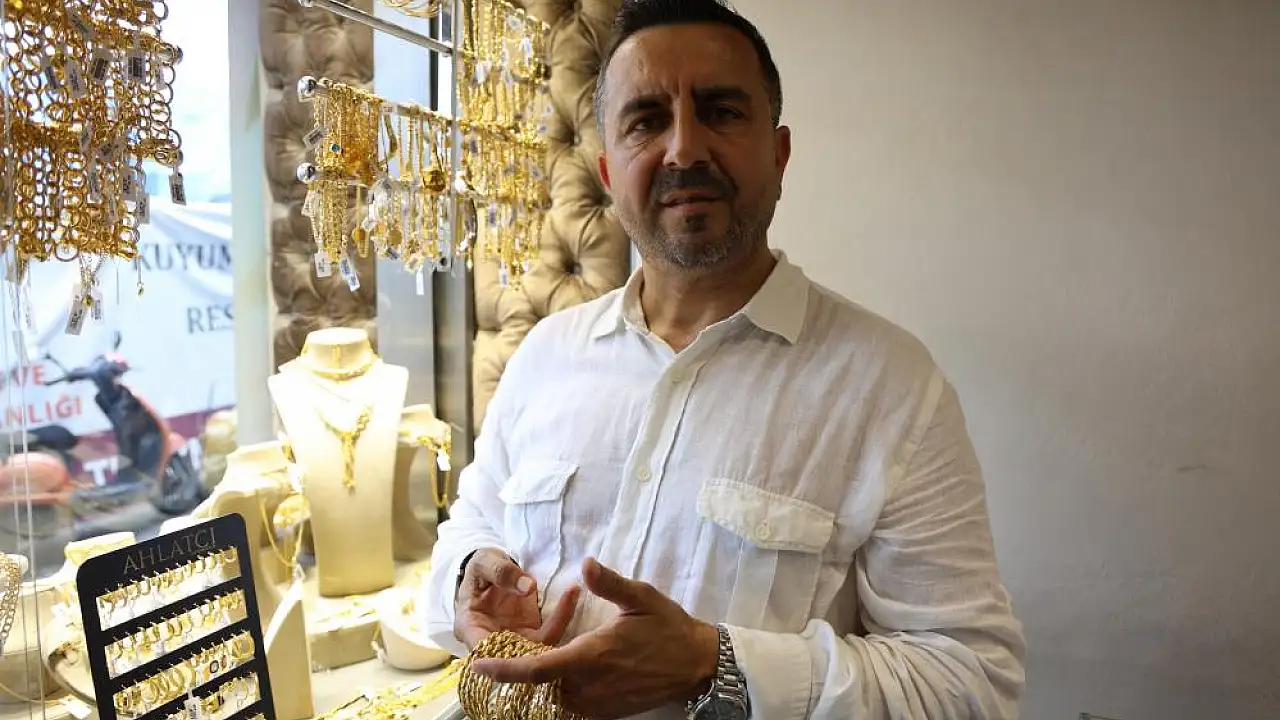Hatay'da sarraflık yapan Ahmet Güney, yeni evlenecek çiftlere yüksek faiz oranlarını örnek göstererek kredi çekerek altın almamalarını tavsiye etti