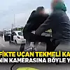 Araçlarından inen sürücüler, birbirlerine uçan tekmeyle saldırdı. Trafikte yaşanan korku dolu anlar çevredeki vatandaşlar tarafından cep telefonu kamerasıyla kaydedildi.