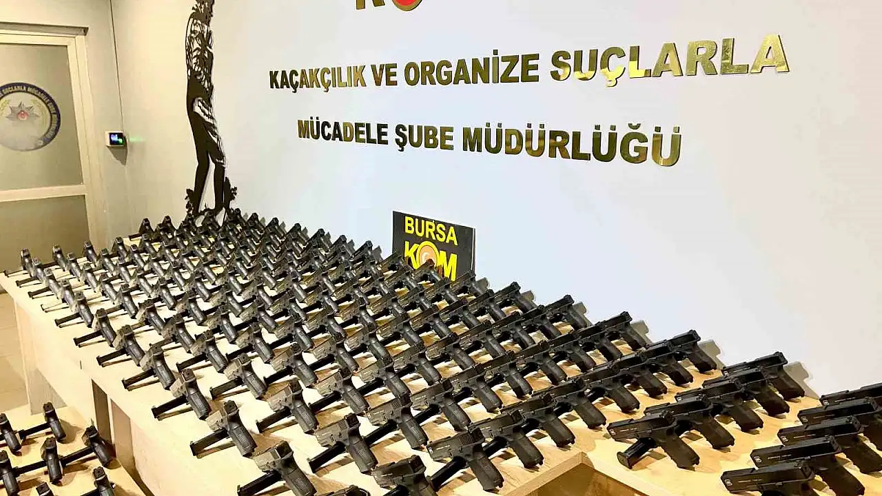 Bursa İl Emniyet Müdürlüğü Kaçakçılık ve Organize Suçlarla Mücadele Şube Müdürlüğü Organize Suçlar Büro Amirliği ekipleri, "Ruhsatsız Silah İmal ve Ticareti" suçuna yönelik operasyon düzenledi. İl dışından Bursa'ya çok fazla sayıda ruhsatsız tabanca sevkiyatı yapılacağı bilgisini alan ekipler, teknik ve fiziki takibe başladı. D.Ö. isimli şüpheli şahsın Bursa dışından kiraladığı araç ile suçu kamufle etmek ve dikkat çekmemek amacıyla eşi ve çocuklarını yanına alarak ve alternatif güzergahlar kullanarak Bursa'ya geldiği belirlendi. Polis ekipleri Bursa'ya gelen aracı İnegöl girişinde durdurdu. Yapılan aramada aracın bagaj kısmında satışa hazır ayrı ayrı paketlenmiş toplamda 150 adet tabanca yakalandı. Dana önce de benzer suçlardan çok sayıda suç kaydı bulunan şüpheli D.Ö., çıkarıldığı mahkemece tutuklandı.
