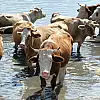 Büyükbaş hayvanlar gölette serinledi