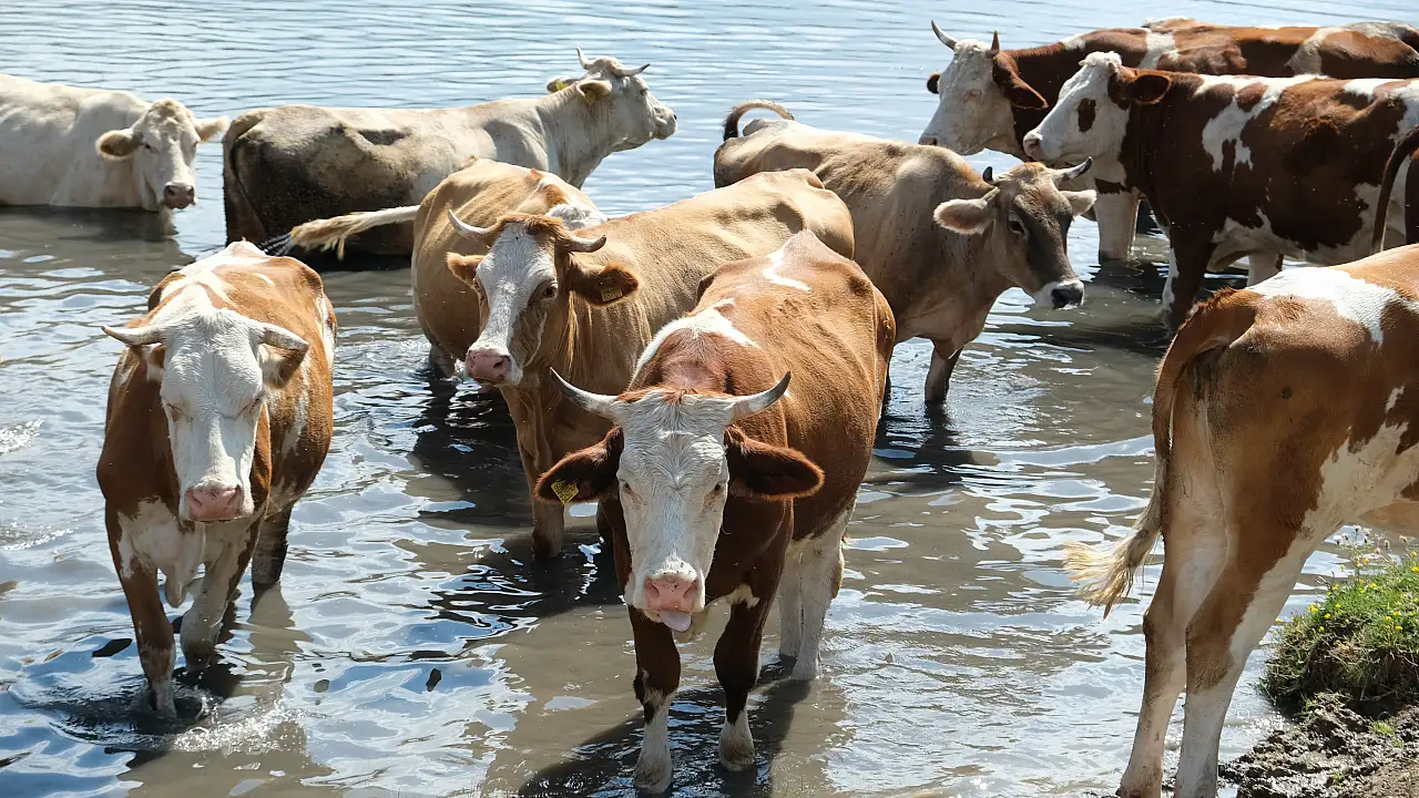 Türkiye genelinde yaşanan aşırı sıcaklar insanlar kadar hayvanları da etkiledi. Genellikle mandaların suya girerek serinlediği görülürken bu kez serinleyen inekler oldu. Erzincan’da çobanlar öğle saatlerinde sıcaktan bunalar büyükbaş hayvanları gölete sokarak serinletmeye çalıştı.