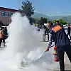 Büyükşehir Belediyesi İtfaiye Daire Başkanlığından eğitmen Cahit Ak, katılımcılara yangına nasıl müdahale edileceğini ve yangın tüpünün kullanılması hakkında bilgiler verdi.