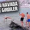 Samsun'da çeşitli meslek grubundan 5 kişi dondurucu havada Karadeniz'e girdiler.
