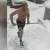 Başkent'te bir vatandaşın kar yağışına ve soğuk havaya aldırış etmeden yarı çıplak şekilde sokakta kar temizlemesi görenleri hayrete düşürdü