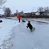 Buz tutan derede kızakla kayıp gönüllerince eğlendiler