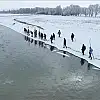 Buz tutan nehirde sıra dışı balık avı