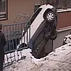 Buz tutan yolda kontrolden çıkan araç, bina boşluğuna uçtu