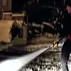 Bartın'ın Amasra ilçesinde etkili olan kar yağışı nedeniyle karayollarında oluşan buzlanmalardan dolayı araçlar yolda mahsur kalınca itfaiye ekipleri deniz suyu ile yolları açtı
