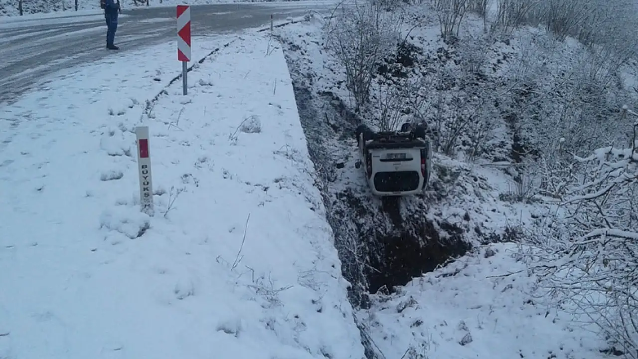 Buzlu yolda kayan araç devrildi: 4 yaralı