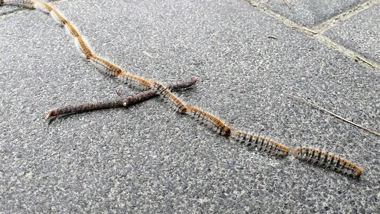 Samsun'da çam ağaçlarındaki keselerden düşen çam kese böcekleri (tırtılları), yaptıkları uzun konvoylar ile ilginç görüntüler oluşturdu.