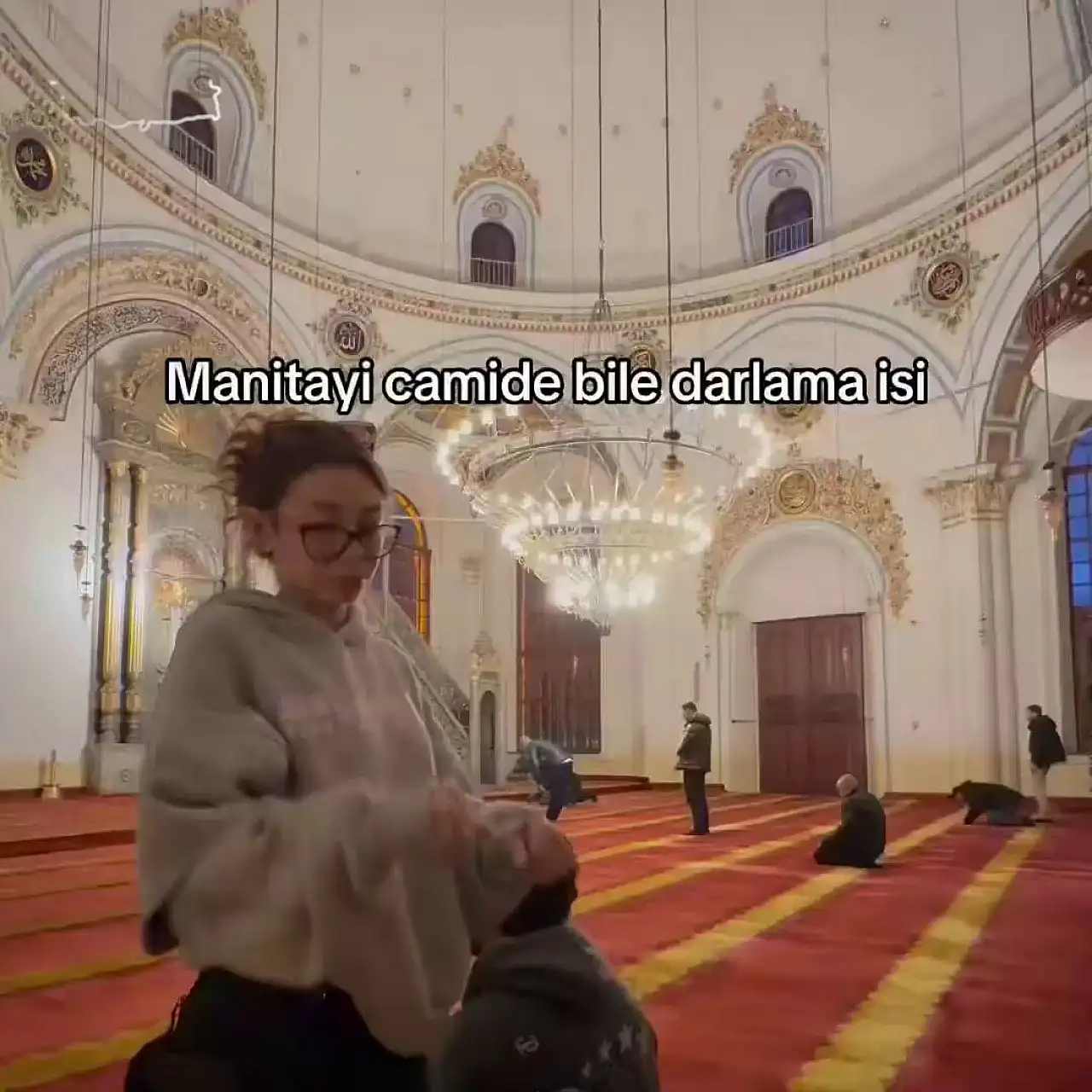görüntülerde camiye başı açık ve uygunsuz kıyafetle giren şahsın namaz kılan erkekler arasında dans ettiği ve bu anları “Manitayı camide bile darlama işi.” notuyla paylaştığı görüldü.