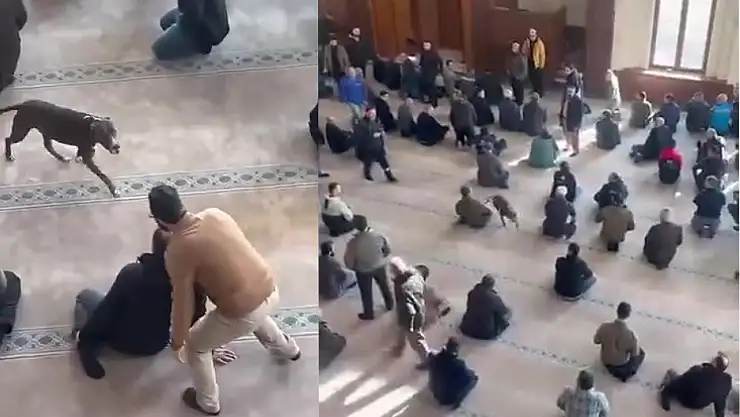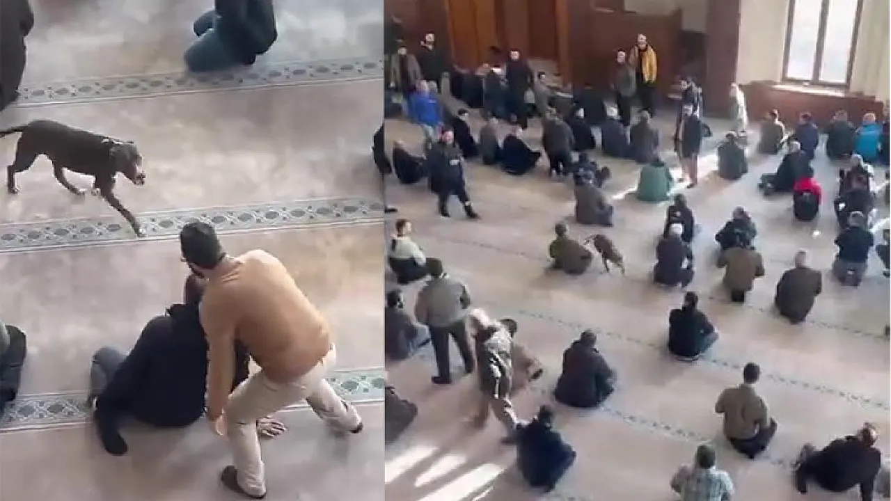 Olay, dün cuma namazı hazırlıklarının sürdüğü sırada meydana geldi. Tasmalı pitbull, açık kapıdan cami içerisine girdi. Köpeği fark eden cemaat, durumu görevlilere bildirirken, cami içinde kısa süreli hareketlilik yaşandı.