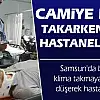 Samsun'da bir camiye klima takmaya çalışan işçi düşerek hastanelik oldu.