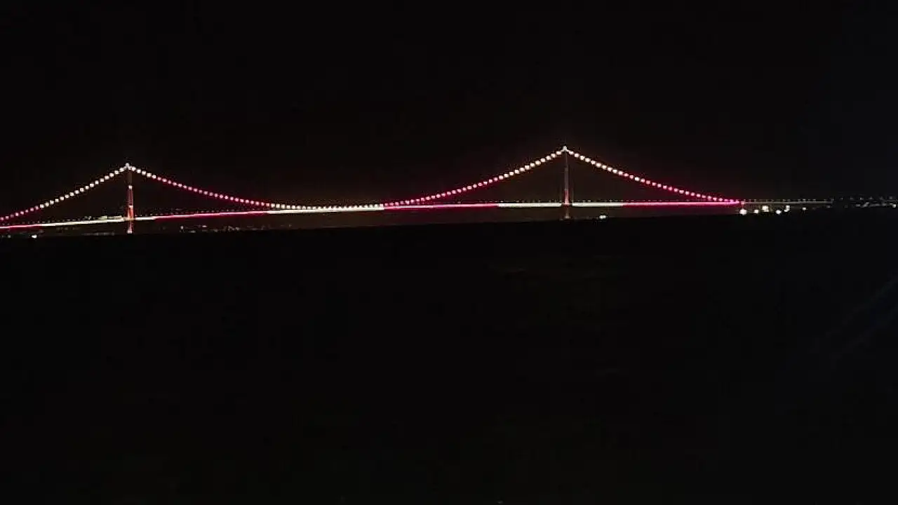 Çanakkale Köprüsü sarı kırmızılı renklerle aydınlatıldı