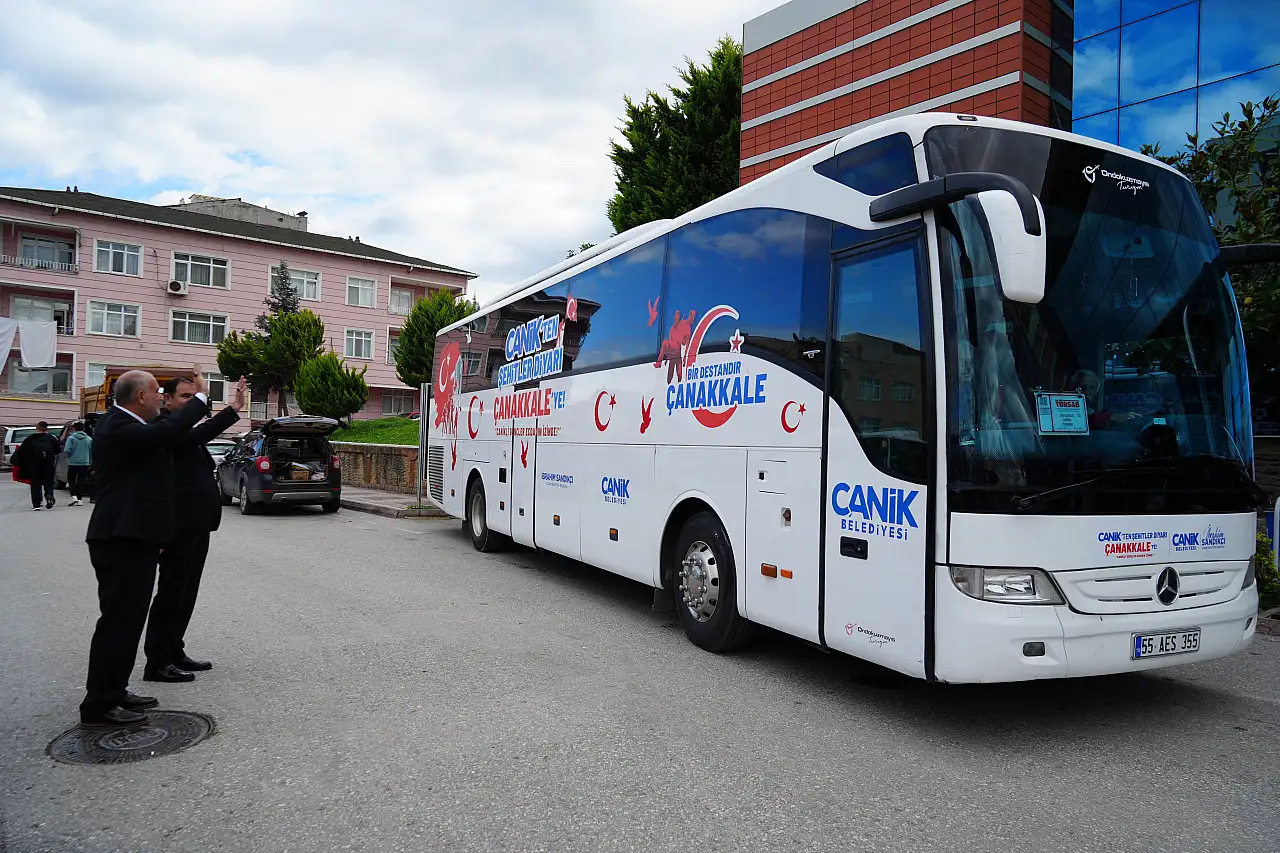 Canik Belediyesi'nin 'Canikli Gençler Ecdadın İzinde Projesi' kapsamında lise son sınıf öğrencilerini Çanakkale'ye götüren bu yılın ilk kafilesini uğurladı.