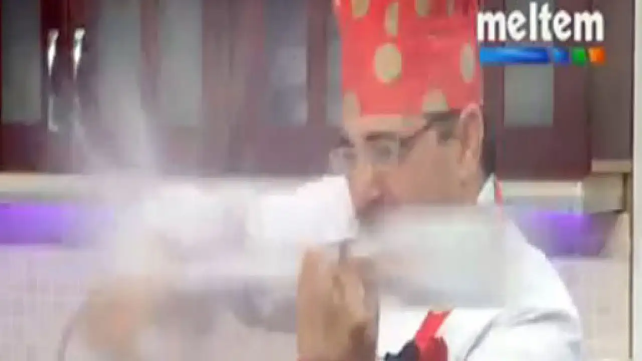 Meltem TV'de ekranlara gelen yemek programında ustanın elinde şişe patladı