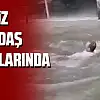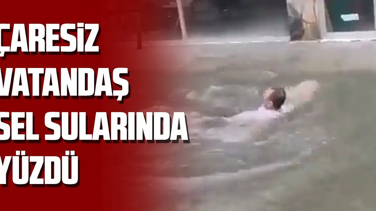 Samsun'da yaşanan sağanak yağış sonrası meydana gelen su baskınları karşısında çaresiz kalan bir vatandaş, kendini sel sularına bırakarak yüzdü. Vatandaşın yüzme anları, cep telefonu kamerasına anbean yansıdı.
