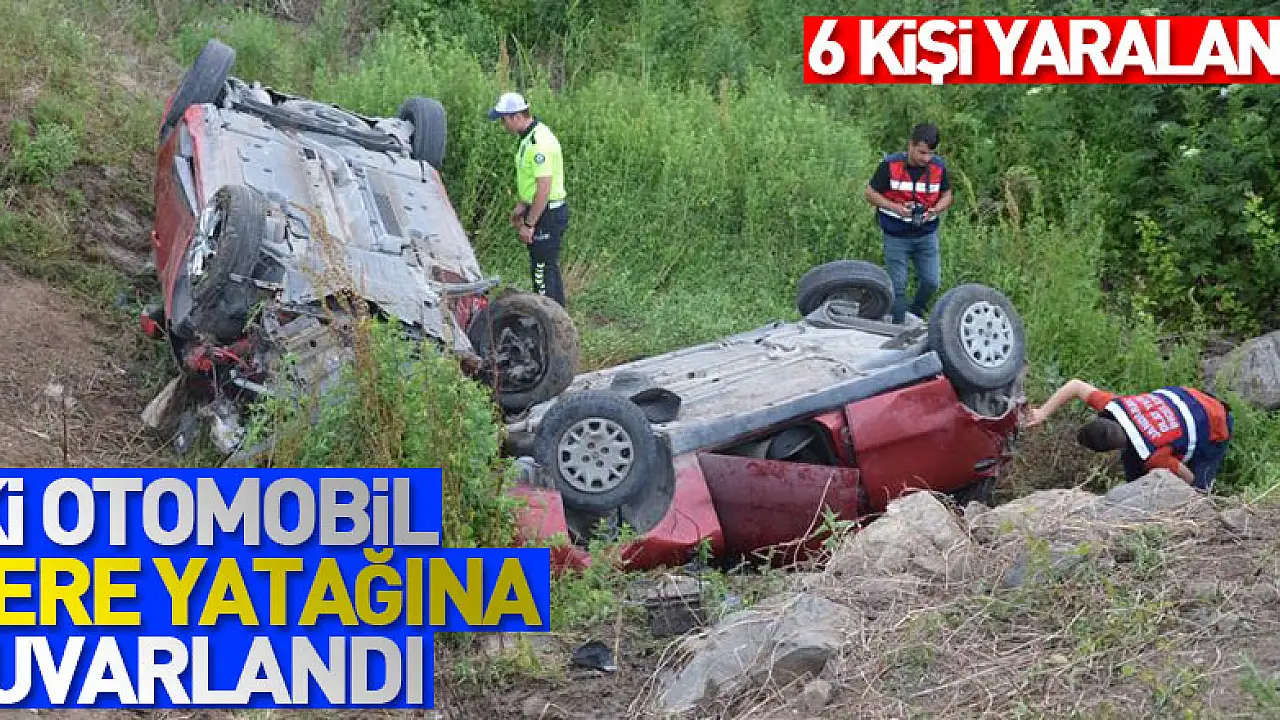 Çarpışan iki otomobil dere yatağına yuvarlandı: 6 yaralı