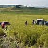 Çorum'un Alaca ilçesinde, çarpışan iki otomobil buğday tarlasına uçtu. Kazada 5 kişi yaralandı