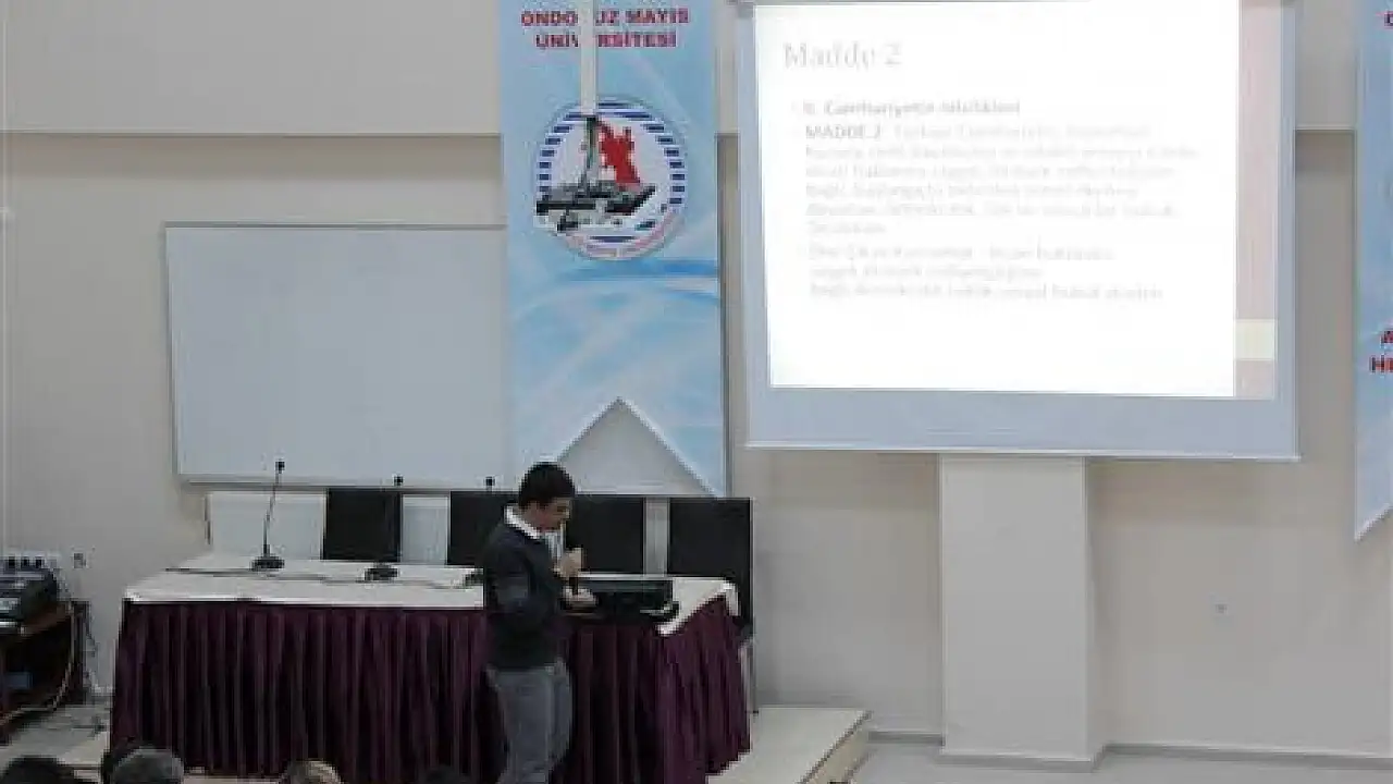 Programın ikinci bölümünde ise öğrenciler yerlerini hocalarına bıraktı. Türkiye’nin Yeni Anayasa Arayışı başlıklı oturumda akademisyenler yapılması gündemde olan Anayasa konusunda sunumlar yaptılar. Oturum başkanlığını OMÜ A. F. B. Hukuk Fakültesi dekanı Mustafa Tiftik’in yaptığı ilk oturumda yapılan sunumlar; OMÜ A. F. B. Hukuk Fakültesi Arş. Grv. Metin Baykan, Ord. Prof. Dr. Ali Fuad Başgil’in Türk Anayasa Hukukuna katkısı; Akdeniz Üniv. Hukuk fakültesi Yard. Doç. Dr. Eral Topçu, Yeni Anayasanın yapım süreci üzerine; OMÜ A. F. B. Hukuk Fakültesi Doç. Dr. Erdal Abdulhakimoğulları, Anayasanın değiştirilemez Maddeleri, Süleyman Demirel Üniversitesi Hukuk Fakültesi Doç. Dr. Yüksel Karagöz, Yeni Anayasada Temel Hak ve Hürriyetler; Erciyes Üniversitesi Hukuk fakültesi Doç. Dr. Kasım Karagöz, yeni anayasada siyasi partiler rejimi; Selçuk Üniversitesi Hukuk Fakültesi Doç. Dr. Faruk Bilir, Yeni Anayasada seçim ve hükümet sistemi; Atatürk Üniversitesi Hukuk Fakültesi Doç. Dr. Mehmet Tevfik Gülsoy, Yeni Anayasada yasama organı; Akdeniz Üniversitesi Hukuk Fakültesi Yard. Doç. Dr. İbrahim Uğur Esgün, Yeni Anayasada yürütme organı; Karadeniz Teknik Üniversitesi İİBF Dekanı Prof. Dr. Yusuf Şevki Hakyemez, Anayasa Mahkemesinin Yargısal Aktivizmi ve yeni anayasada yargı ile ilgili öneriler, şeklinde oluştu. Oturumlarda yapılan sunumlar da özellikle anayasanın değiştirilemez hükümleri konusunda akademisyenler fikir birliği sağlayamazken bu konuda birbirinden farklı sunumlar yapıldı. Akademisyenlerin yaptıkları sunumların ardından sempozyum son buldu.