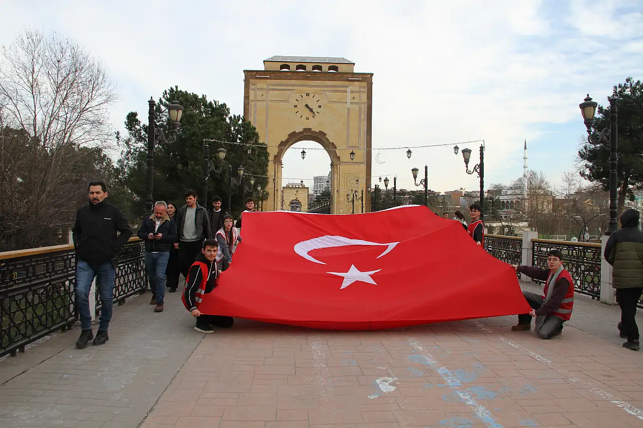CHP Gençlik Kolları üyeleri, ellerinde Türk bayrağıyla tarihi köprü üzerinde yürüyerek saldırıları protesto etti. Yürüyüş boyunca birlik ve beraberlik mesajları veren grup, yaşanan saldırıların toplumda derin bir üzüntü yarattığını ifade etti.