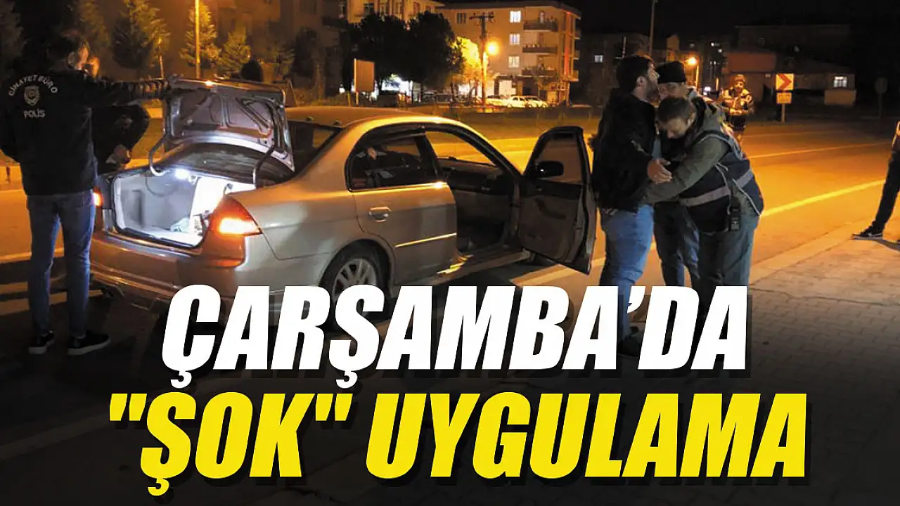 Cadde ve ara sokaklarda, umuma açık içkili yerlerde, kişiler ve araçlar üzerinde Asayiş Şube Müdürlüğü ve Çarşamba İlçe Emniyet Müdürlüğüne bağlı ekiplerinden oluşan 10 amir ve 94 polis memurunun katılımıyla "şok" uygulama yapıldı.