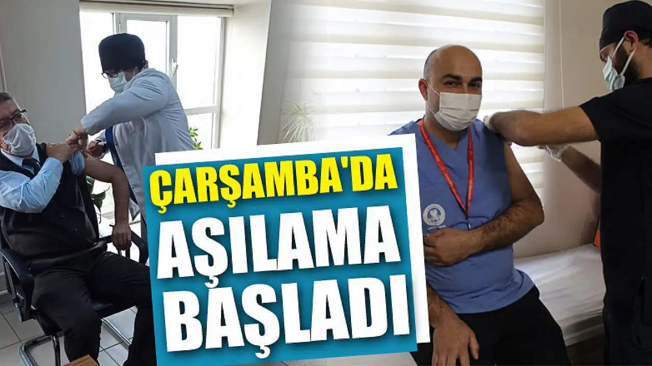 Kovid-19 aşılarının Samsun'un Çarşamba ilçesine gelmesiyle birlikte ilk olarak Çarşamba Aile Sağlığı Merkezi Müdürü Şevki Gülay ve ardından sağlık çalışanları aşı oldu.