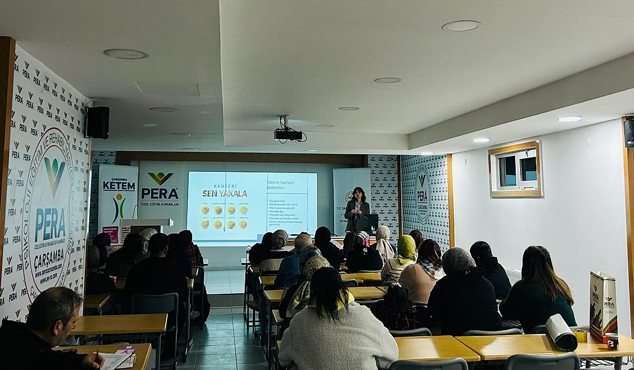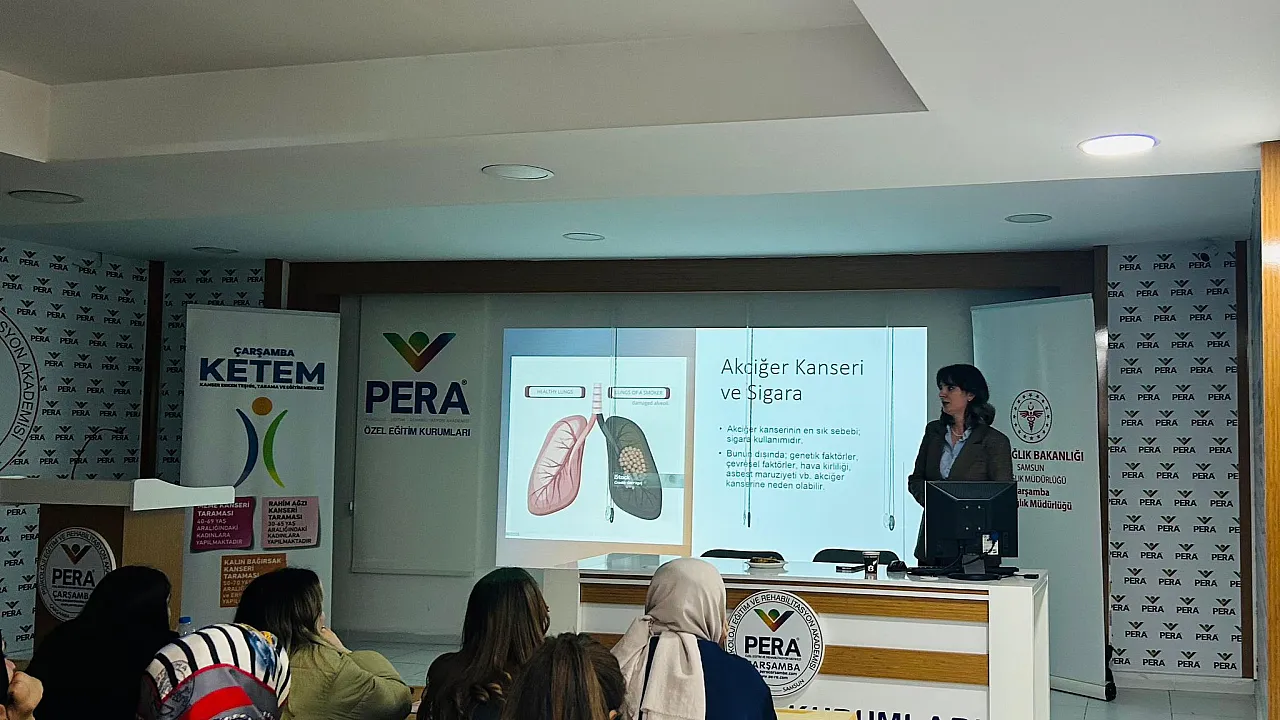 Çarşamba İlçe Sağlık Müdürlüğüne bağlı KETEM birimi tarafından düzenlenen etkinlikte, kanser taramalarının önemi hakkında bilgilendirici bir sunum gerçekleştirildi. Katılımcılara erken teşhisin hayat kurtarıcı rolü vurgulanırken; meme, rahim ağzı ve kolorektal kanser başta olmak üzere ulusal tarama programları hakkında güncel bilgiler paylaşıldı. Ek olarak sigara bağımlılığı ve tedavisinden de bahsedildi.
