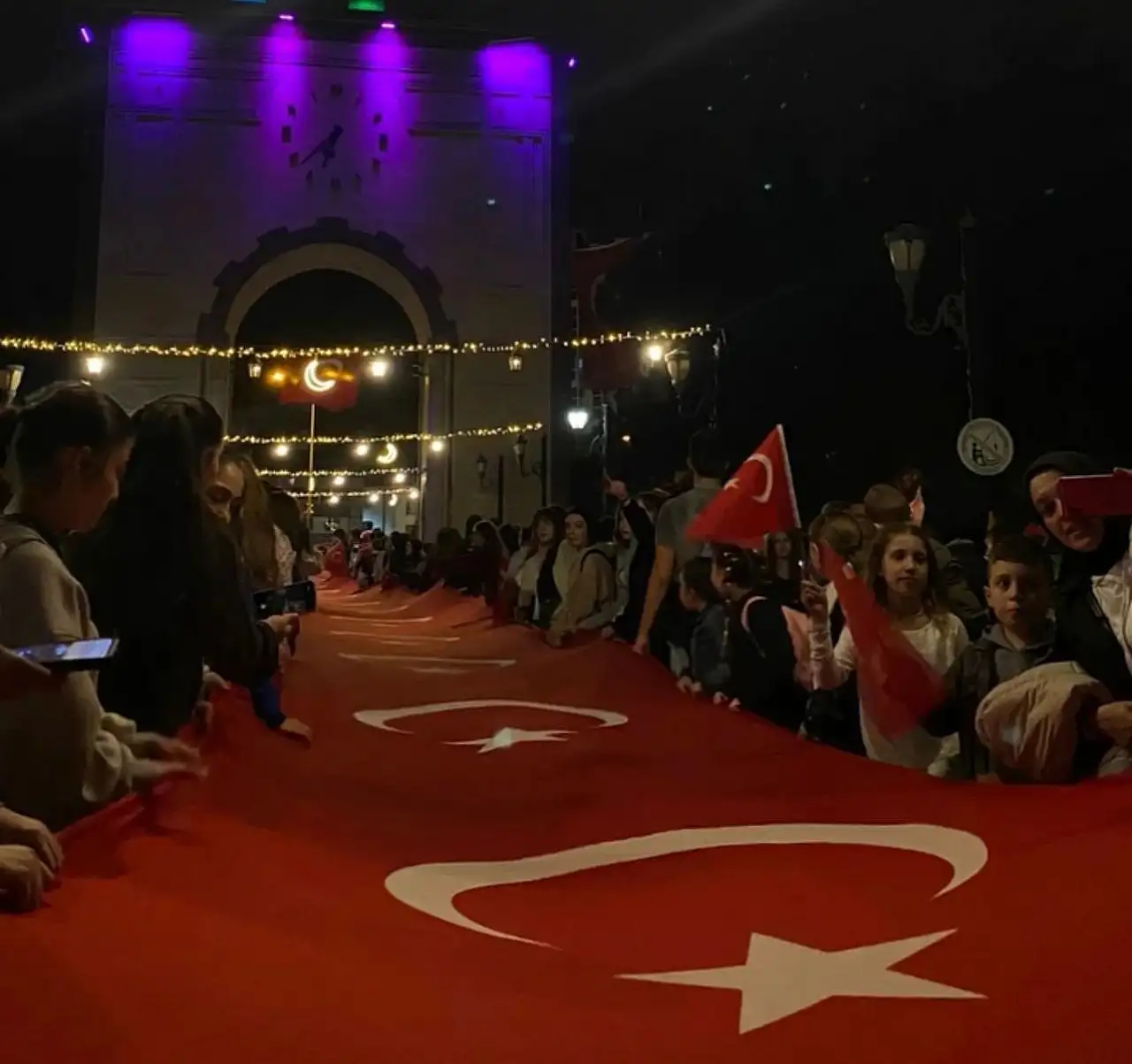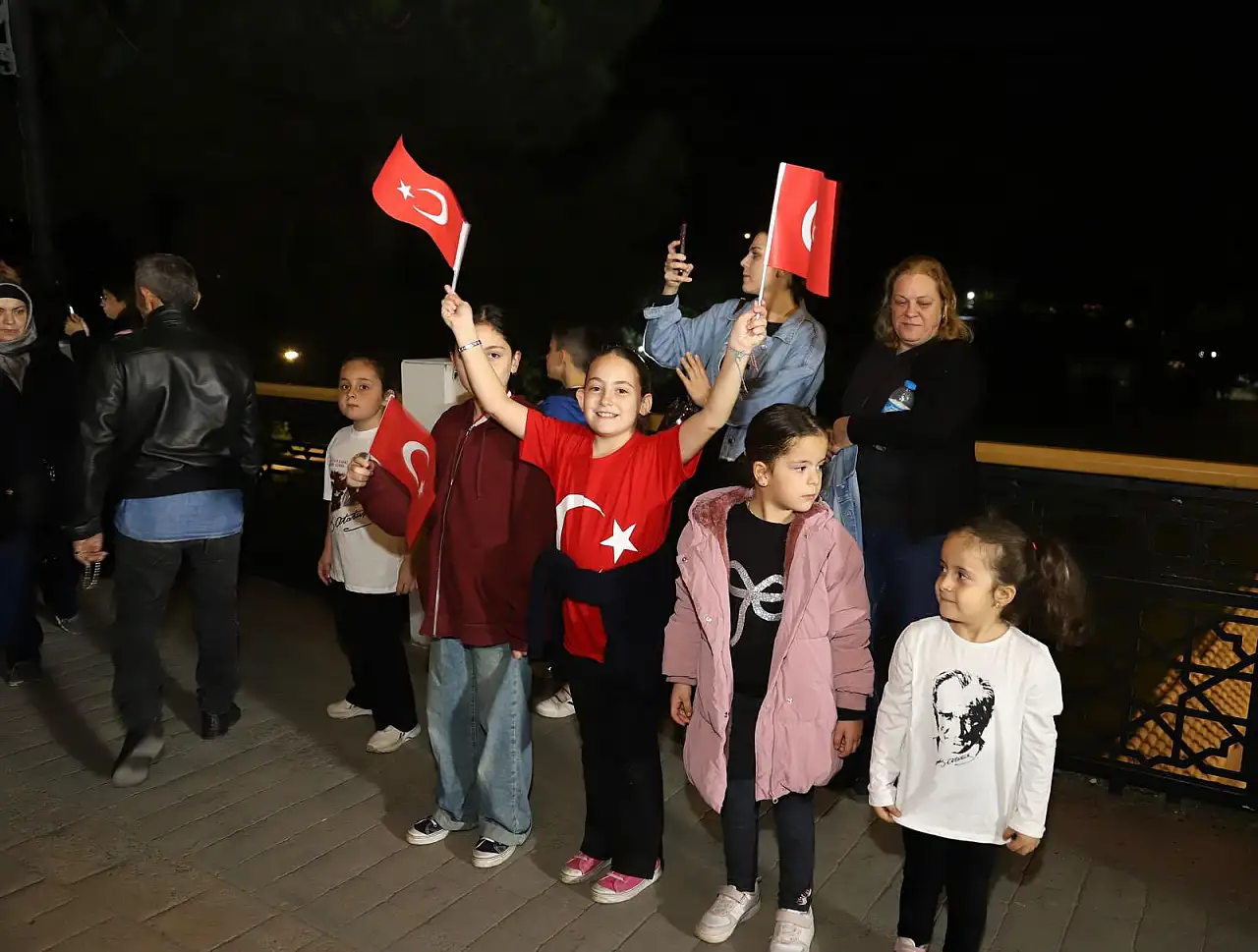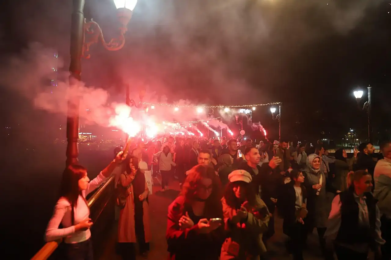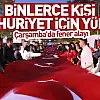 Yüzlerce vatandaş Türk bayraklarıyla ve fenerlerle Belediye Meydanı’na kadar marşlar eşliğinde yürüyüş gerçekleştirdi. Fener Alayı, tüm katılımcıların bando ekibine tebriklerinin ardından tamamlandı.