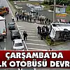Çarşamba ilçesinde meydana gelen trafik kazasında tırın çarptığı Çarşamba Özel Halk Otobüsü devrildi.