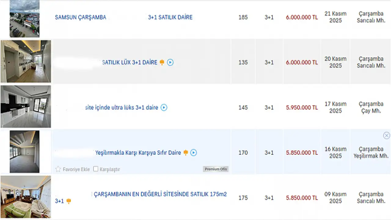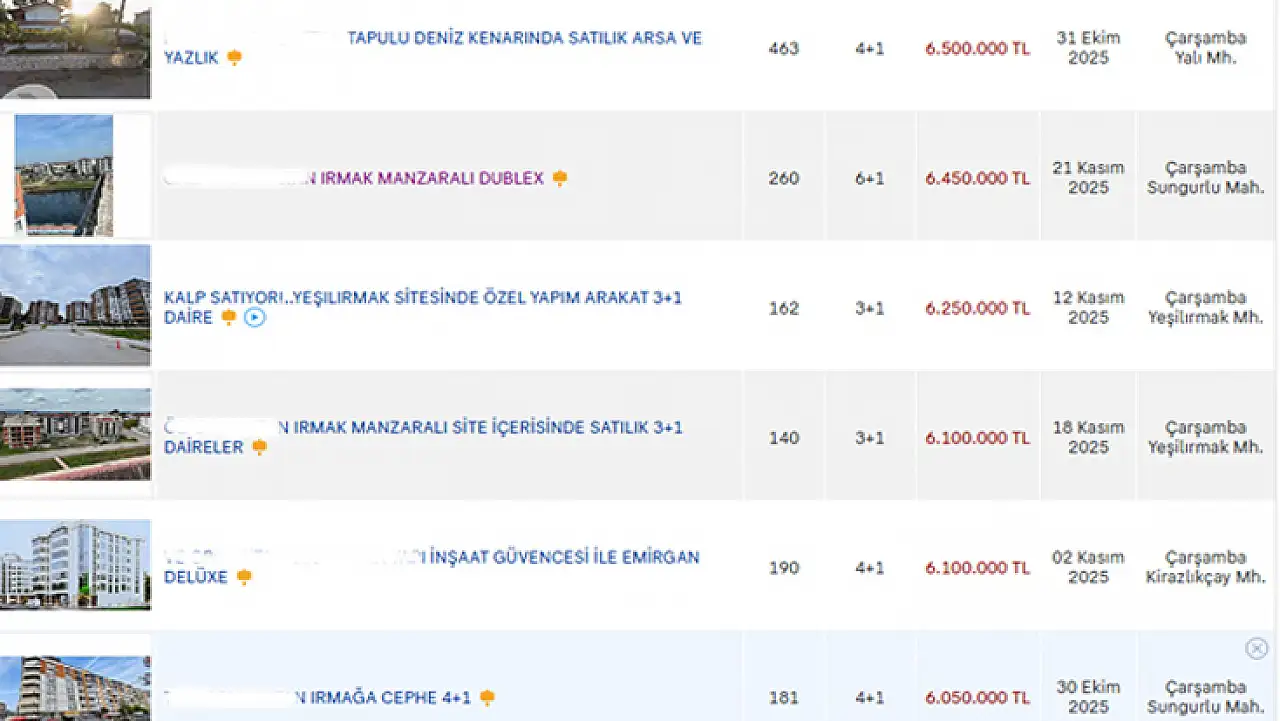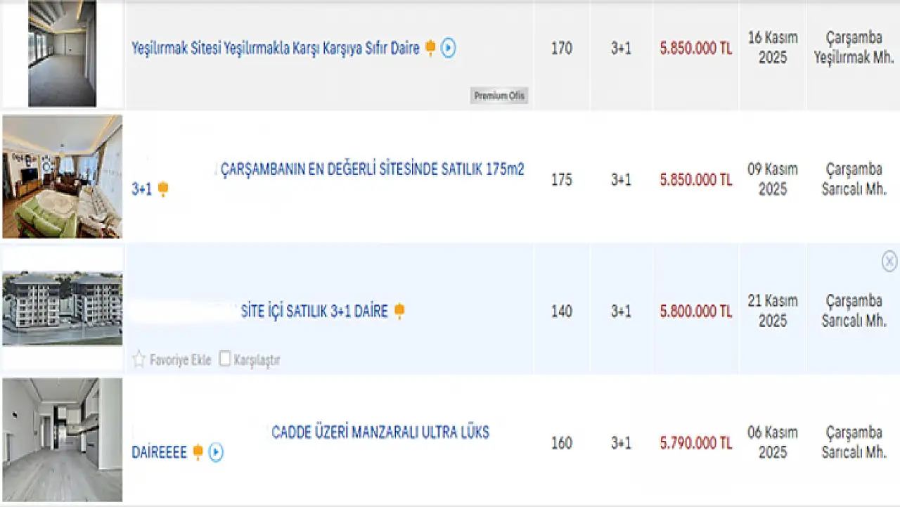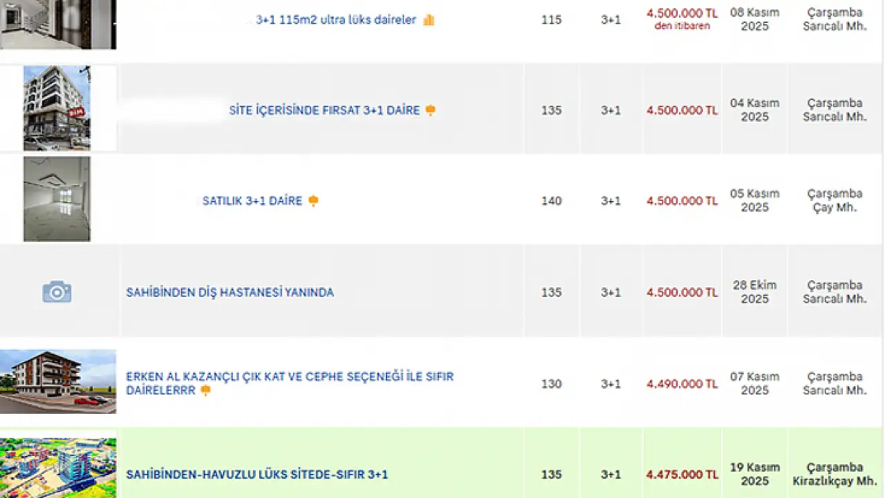 Çarşamba'da konut fiyatları zirve yaptı 3+1 daire 7,5 milyona dayandı