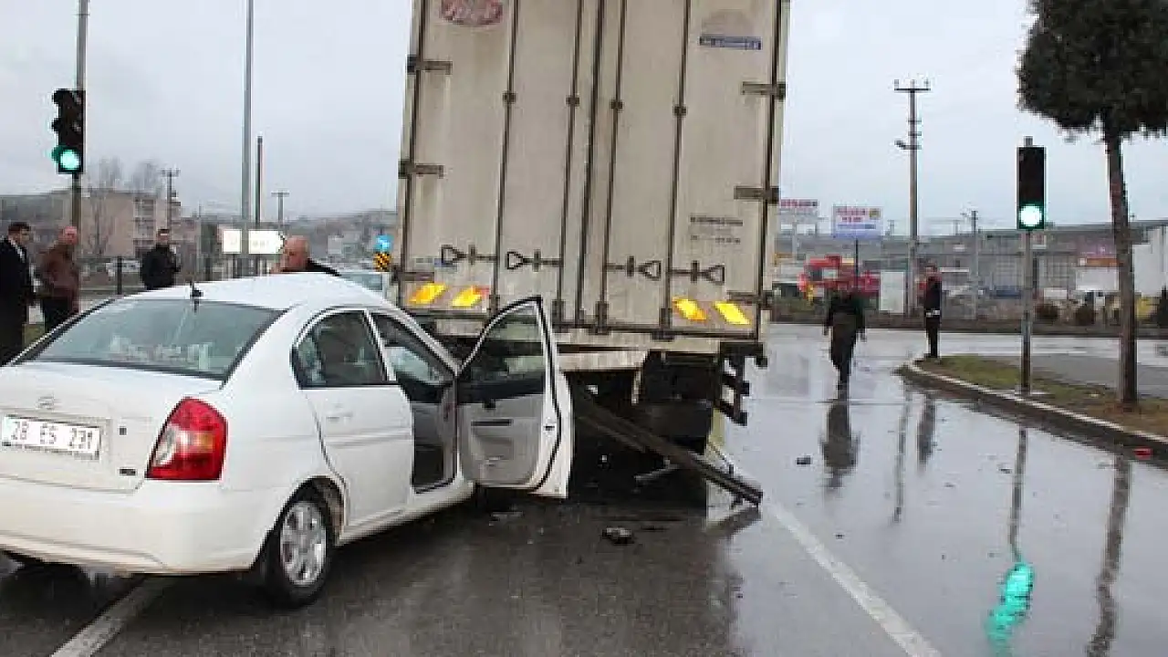 Edinilen bilgilere göre; Kaza saat 16,00 sıralarında Çarşamba beylerce mevkii otogar ışıklarında meydana geldi. Çarşamba' dan Samsun' a gitmekte olan İbrahim B. (40) idaresindeki 55 BN 452 plakalı kamyon ışıklarda durduğu sırada arkadan gelen Mustafa P.(55) idaresindeki 28 ES 231 plakalı otomobil yolun kaygan ıslak olması nedeni ile duramayarak önünde duran kamyona arkadan çarptı. Çarpmanın şiddetiyle otomobil içerisinde bulunan Hanife P. (54) hafif yaralandı. Yaralanan Hanife P. 112 Acil ekipleri tarafından Çarşamba Devlet Hastanesine kaldırıldı. Kazayla ilgili soruşturma devam ediyor.
