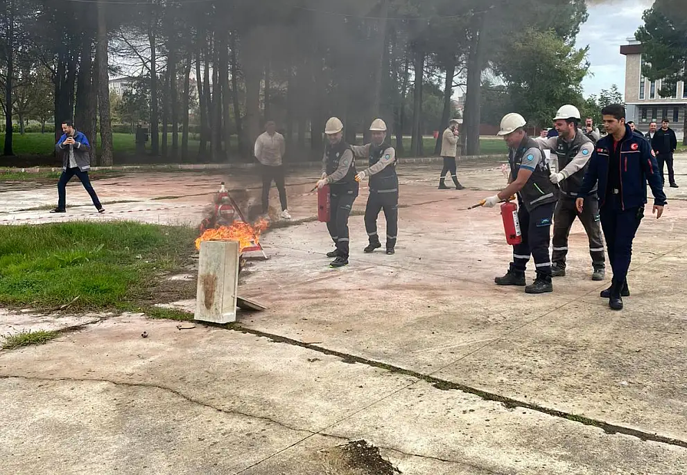 Samsun Büyükşehir Belediyesine bağlı İtfaiye Amirliği tarafından düzenlenen tatbikatta, çalışanlara yangın anında yapılması gereken doğru müdahale yöntemleri, tahliye prosedürleri ve yangın söndürme ekipmanlarının kullanımı uygulamalı olarak anlatıldı.