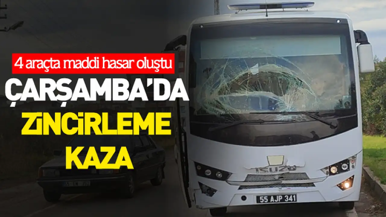 Samsun'un Çarşamba ilçesinde meydana gelen zincirleme trafik kazasında 4 araç birbirine girdi. Kazada yaralanan olmazken, araçlarda maddi hasar oluştu