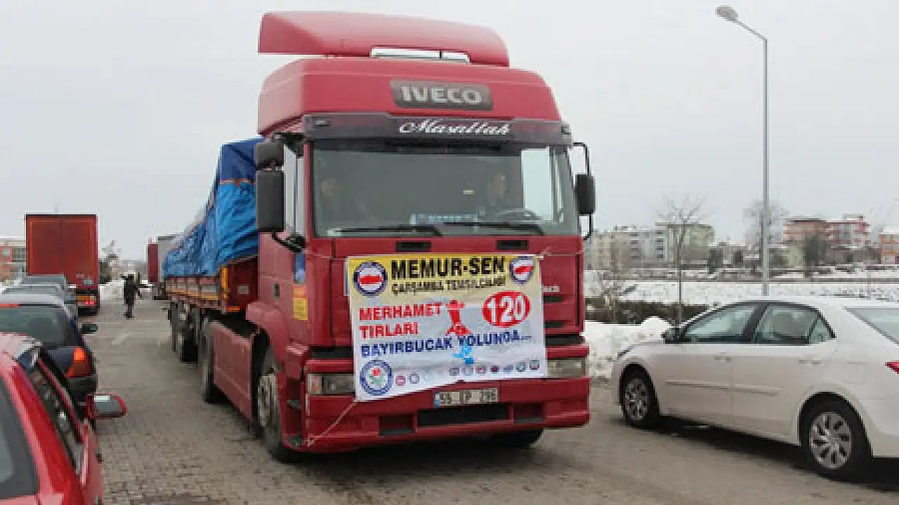 yola koyuldu. Yardım TIR’larının yolculuğu öncesi basın açıklaması yapan Memur-Sen Çarşamba Şube Başkanı Osman Şafak, “Modernizm çağı olarak adlandırılan 21. Yüzyılda, bir tarafta israfın sınırları zorlanmakta, tüketim çılgınlığı ve lüks yaşantı yarışı yaşanmaktayken; diğer tarafta, insanlar açlıkla, savaşla, iffet ve namuslarıyla, evlatlarıyla imtihan edilmektedir. En geniş ifadeyle; Batı diye adlandırabileceğimiz dünyayı yönetenler, sömürü düzenlerini devam ettirebilme adına, hiçbir sınır ve ahlak ölçüsü tanımamakta, Afrika kıtasında, Uzakdoğu'da, Ortadoğu'da ve dünyanın birçok bölgesinde, kendi yazdıkları senaryolarla, aynı millete, aynı dine, ortak geçmişe ve ortak kültüre sahip insanları birbirlerine düşman ederek savaştırmakta ve bahsi geçen bölgelerdeki bütün kaynakları sömürmektedir. Dünyanın birçok bölgesinde olduğu gibi hemen yanı başımızda, Suriye'de de, din ve soy kardeşlerimize karşı, vicdan taşıyan, kalbinde merhamet duygusu olan hiç kimsenin sessiz kalamayacağı dramlar yaşatılmaktadır. Çaresizlik içerisinde, çoluk çocuğunu yanına alarak 50-60 kişi, plastik botlarla koca denizlere açılıp umuda yolculuk yapmaya çalışırken balıklara yem olan, yiyecek hiçbir şey bulamadığı için ot ve ağaç kabuğu yiyen, kedi köpek eti yemek zorunda kalan, açlıktan ölen insanlar hemen yanı başımızda, sınırlarımızın hemen ötesinde, kendilerine uzanacak bir yardım eli beklemektedirler.” Dedi.