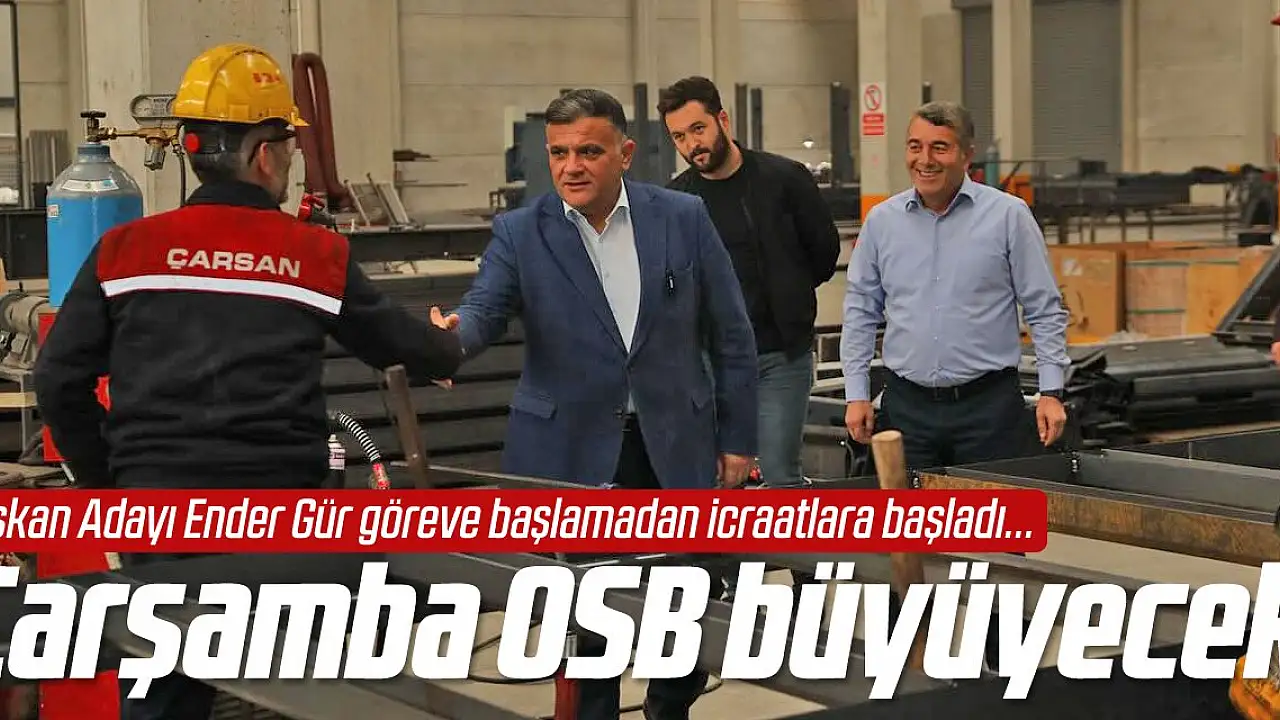 Cumhur İttifakı AK Parti Çarşamba Belediye Başkan Adayı Ender Gür, göreve başlamadan icraatlara başlarken, "Çarşamba OSB'de tüm yer tahsisleri yapıldı. Yer isteyen var ama yer yok. OSB'nin hemen yanında orman vasfını kaybetmiş 400 bin metrekare arazi var. Bakanlıklarla o araziyi de OSB'ye dahil etmek için görüşüyoruz" dedi