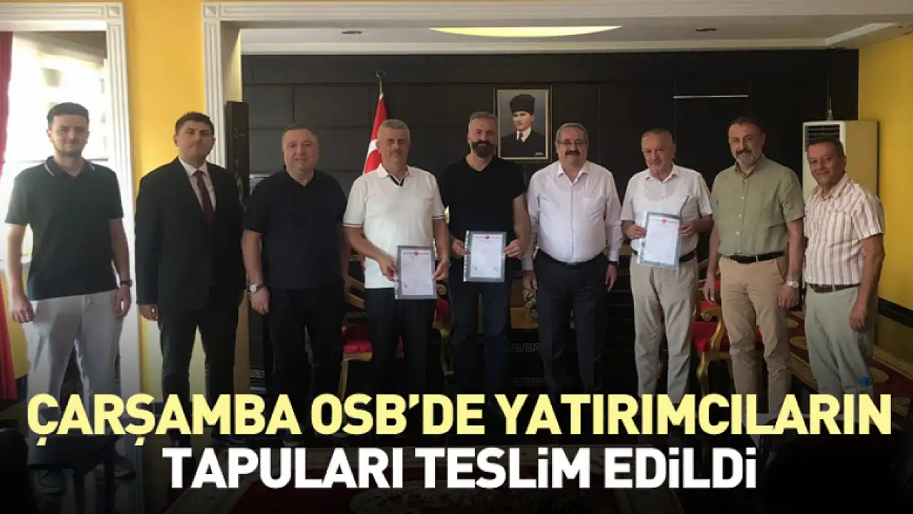 Çarşamba Kaymakamı Mehmet Kamil Sağlam, Çarşamba Ticaret Odası Başkanı Ayhan Sonkaya, OSB Yönetim Kurulu Üyesi Mehmet Köse, Tapu Müdürü Satılmış Köse ve OSB Bölge Müdürü Mehmet Dalgıç’ın katılımıyla düzenlenen törende yatırımcılara tapuları takdim edildi.