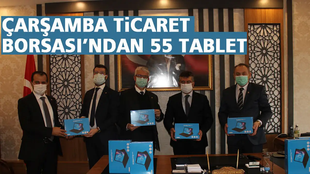 Çarşamba Ticaret Borası tarafından hediye edilen 55 adet tabletten 15 adedi ise Ayvacık ilçesinde ihtiyaç sahibi öğrencilere dağıtımını sağlanması amacıyla Ayvacık İlçe Milli Eğitim Müdürü Süleyman Ak’a teslim edildi.