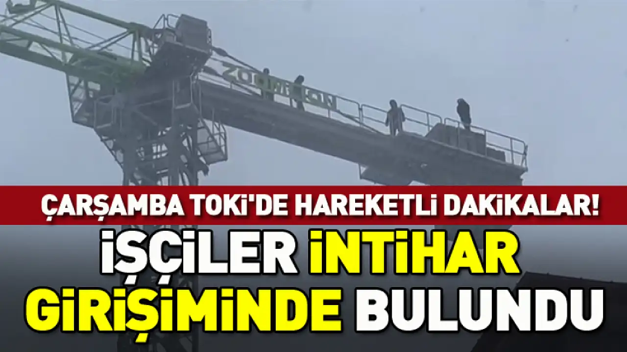 Samsun'un Çarşamba ilçesinde yapımı süren 615 konutluk TOKİ inşaatında çalışan bazı işçiler, maaşlarını alamadıkları iddiasıyla kule vince çıkarak intihar girişiminde bulundu.