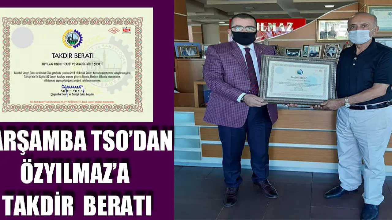 Çarşamba Ticaret ve Sanayi Odası, Türkiye'nin En Büyük İlk 500 Sanayi Kuruluşu arasına giren, Özyılmaz Fındık Ticaret ve Sanayi Limited Şirketi'ni takdir beratı ile ödüllendirdi.