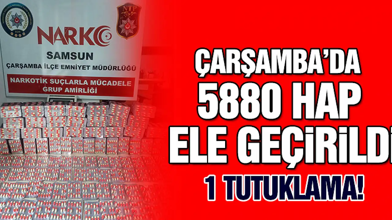 Edinilen bilgilere göre; Çarşamba İlçe Emniyet Müdürlüğü Narkotik Suçlarla Mücadele Grup ve Asayiş Büro amirliği ekipleri yaptıkları istihbari çalışmalar neticesinde, ilçe merkezi Sungurlu Mahallesi’nde C.K.(36) isimli şahsın üst arama ve yanında bulunan kargo paketlerinde yaptıkları kontrollerde 5 bin 880 adet sentetik ecza hap ele geçirildi.