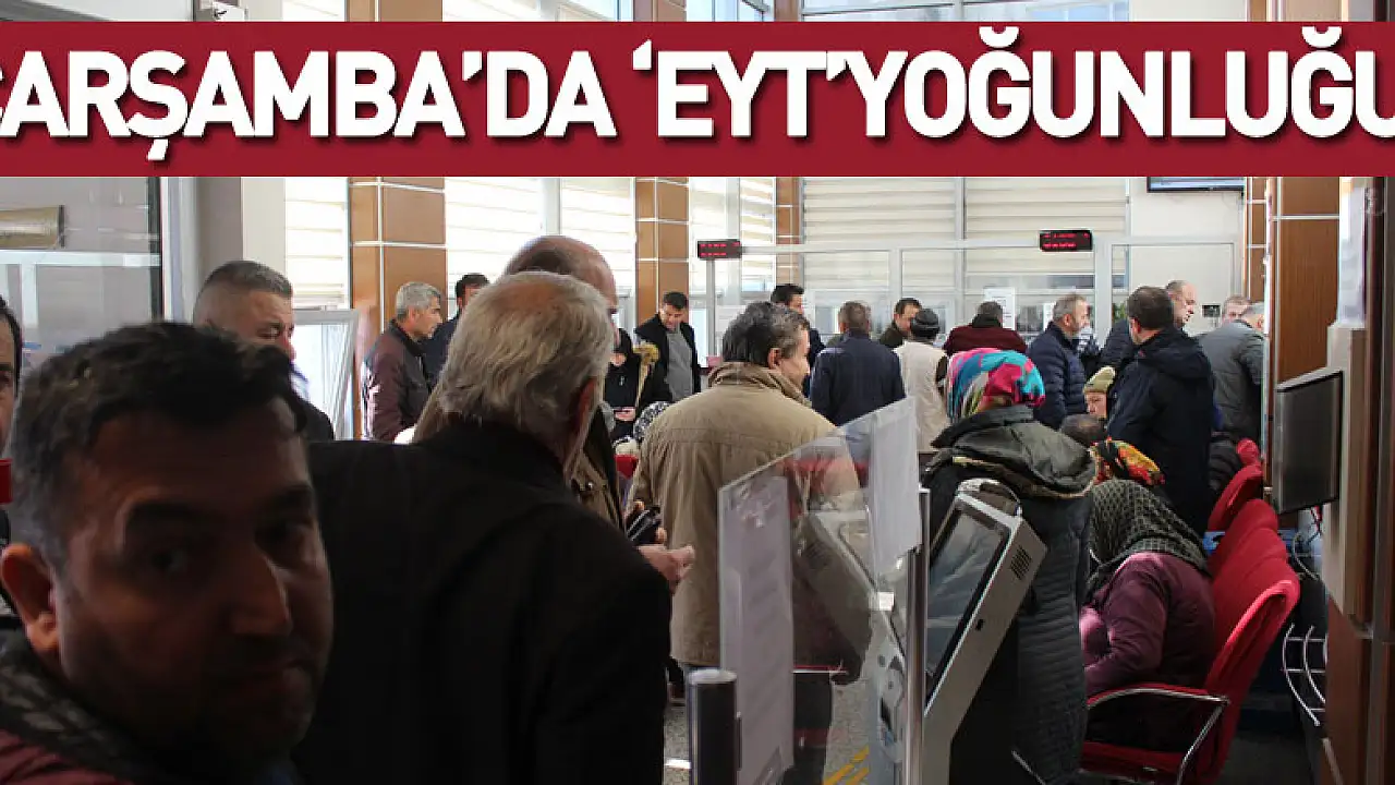 Cumhurbaşkanı Erdoğan'ın önceki gün EYT düzenlemesi açıklamaları sonrası, Çarşamba ilçesinde sabah saatlerinden itibaren Sosyal Güvenlik Kurumu Çarşamba Şubesi önünde yoğunluk yaşandı