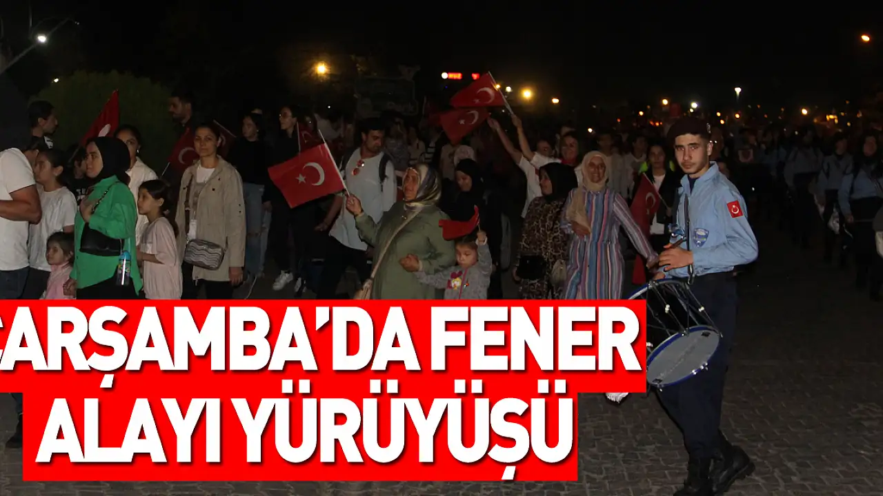 Çarşamba Belediyesinin düzenlediği yürüyüş tarihi Çarşamba evinin önünde başladı. Öğrencilerin bando, vatandaşların meşaleler ve bayraklarla katıldığı yürüyüşte marşlar söylendi. Çarşamba tarihi köprüsünü takip eden fener alayı Abdullah Paşa Meydanı’nda sona erdi. Yürüyüşe, Çarşamba İlçe Kaymakamı Şükrü Yıldırım, Çarşamba Belediye Başkanı Halit Doğan, protokol üyeleri, mülki ve idari amirler ve vatandaşlar katılım sağladı.